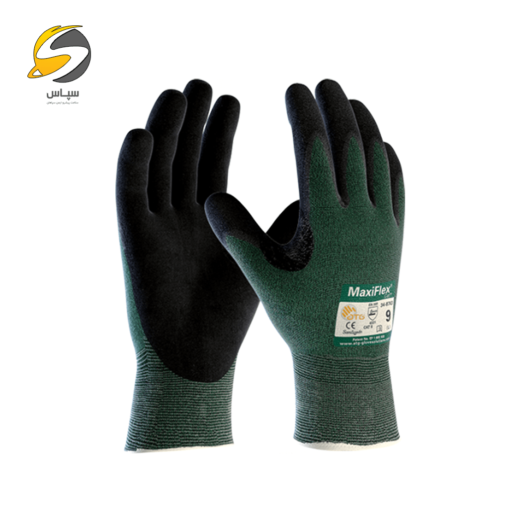 دستکش ضد برش MaxiFlex® Cut 34-8743 کات 3 شرکت ATG برای فعالیت های ظریف و حساس مناسب است و مقاومت برشی بالا (CUT3) دارد. لایه تقویتی بین انگشت شست و انگشت اشاره مقاومت برشی و دوام این ناحیه را افزایش می دهد و مقاومت سایشی آن 12000 سیکل است.