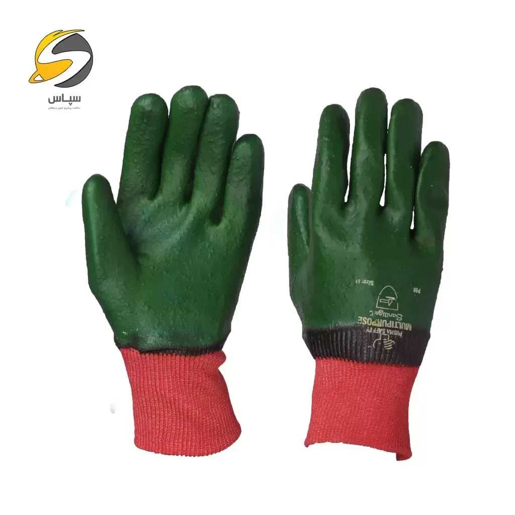 دستکش ایمنی چند منظوره پوشا مدل سبز تمام دیپ با آستر کرک دار